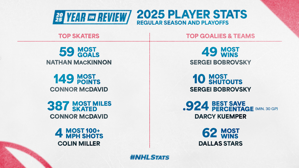 Another year in the NHL was one for the books, with 2025 seeing decades-old League and franchise records fall as new stars of all ages made history. A few key takeaways before a month-by-month look at some of the biggest moments in the #NHLStats: 2025 Year in Review: