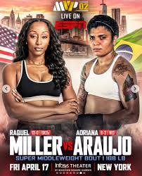 Starting Time: The preliminary undercard (including this bout) is scheduled to begin at approximately 6:30 PM ET / 11:30 PM BST, with the specific ring-walk time for Miller vs. Araujo expected around 7:00–8:00 PM ET depending on undercard flow. The main card airs at 10:00 PM ET on ESPN (prelims on ESPN+). The full event features multiple women’s world-title fights.