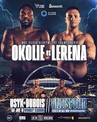 Two former cruiserweight champions collide in a high-stakes heavyweight showdown as Lawrence “The Sauce” Okolie (21-1-0, 16 KOs) defends his WBC Silver Heavyweight Title against South Africa’s Kevin “The KO Kid” Lerena (31-3-0, 15 KOs). The bout serves as the co-main event on the blockbuster Usyk vs. Dubois II card at Wembley Stadium.