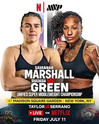 The super middleweight division takes center stage as Savannah Marshall (13–1, 10 KOs) returns to the ring after a two-year layoff to face Shadasia Green (15–1, 11 KOs) in a high-stakes title unification bout on Friday, July 11 at Madison Square Garden, part of Netflix’s all-women’s boxing showcase headlined by Katie Taylor vs Amanda Serrano III.