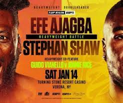 January 14: Efe Ajagba-Stephan Shaw Heavyweight Showdown Tabbed as New Main Event at Turning Stone Resort Casino LIVE on ESPN – Shaw replaces Oscar Rivas, who was forced to withdraw with an injury