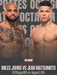 This bantamweight bout features a compelling clash of styles: veteran striker Miles Johns (15-3-0, 1 NC) takes on rising Brazilian prospect Jean Matsumoto (16-1-0). Both fighters are coming off decision losses—Johns to Felipe Lima and Matsumoto to Rob Font—but remain dangerous contenders in a stacked division. Johns brings durability, defensive savvy, and counter-striking, while Matsumoto offers high-volume offense and slick takedown entries. Expect a fast-paced chess match with momentum swings.