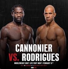 UFC Fight Night: Cannonier vs. Rodrigues Date: February 15, 2025 Venue: UFC APEX, Las Vegas, Nevada Division: Middleweight Rankings: #7 Jared Cannonier vs #14 Gregory Rodrigues