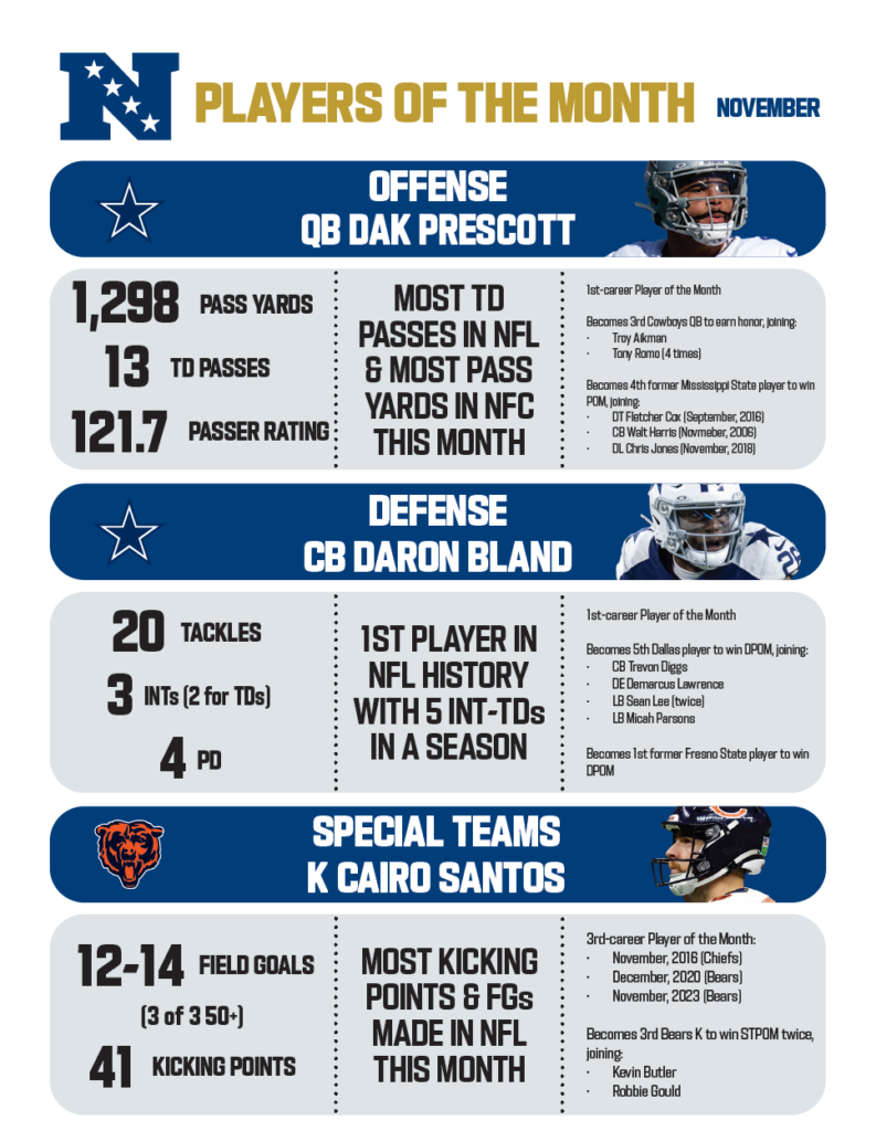 FootballNFL NFC Players & NFL Rookies of the Month – November By NFL Editor - November 30, 2023 0 89 FacebookTwitterPinterestWhatsAppLinkedinReddItEmailPrint