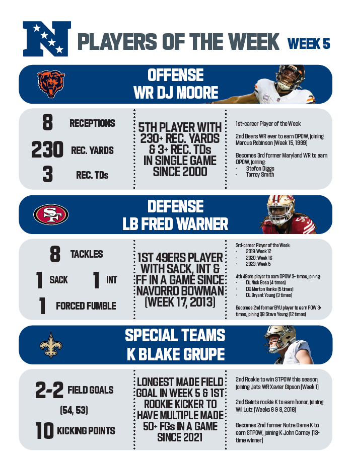 FootballNFL NFL NFC Players of the Week – Week 5 By NFL Editor - October 14, 2023 0 117 FacebookTwitterPinterestWhatsAppLinkedinReddItEmailPrint