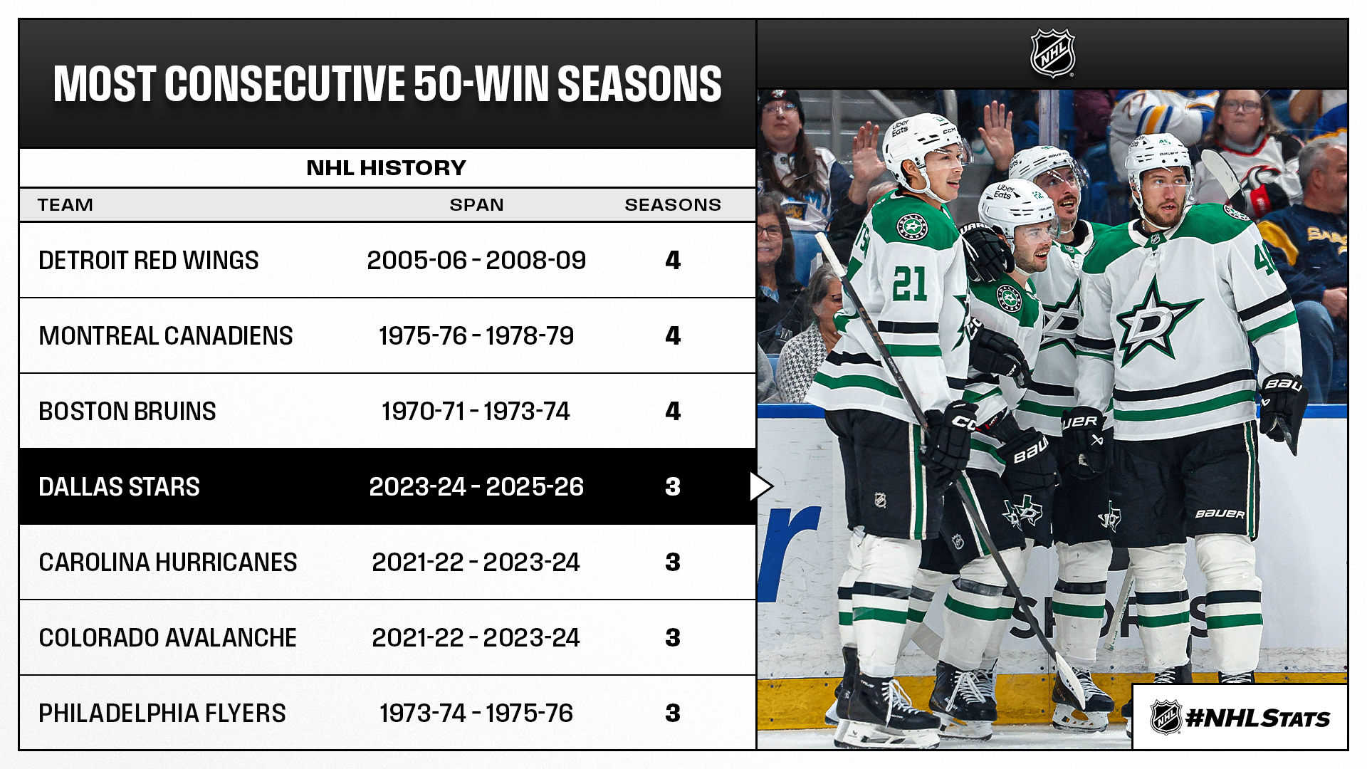 STARS’ THIRD STRAIGHT 50-WIN SEASON SPOTLIGHTED IN #NHLSTATS: LIVE UPDATES