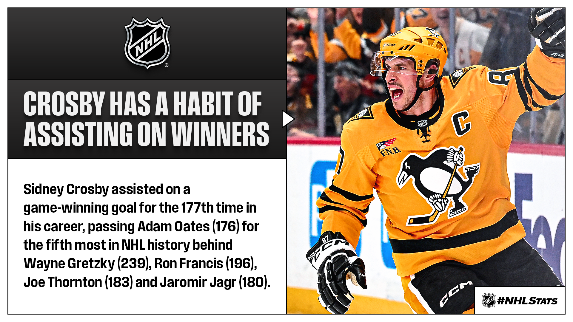 CROSBY COLLECTS THREE POINTS AS PENGUINS BEST PANTHERS IN BACK-TO-BACK