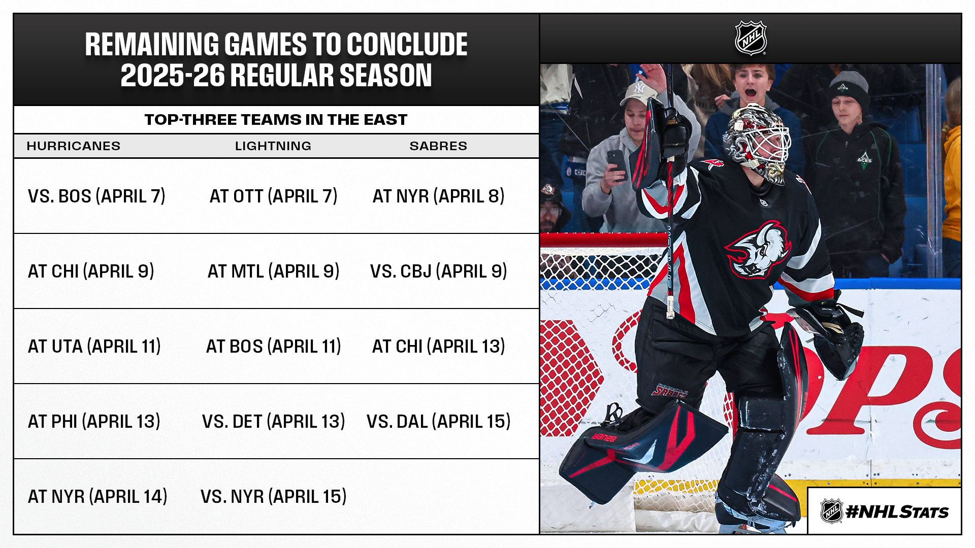 Four different players scored and UkkoPekka Luukkonen (23 saves) collected his 20th victory of the campaign as the Sabres (47-23-8, 102 points) earned their third regulation win against the Lightning (48-23-6, 102 points) in 2025-26 and concluded their season series with at least a point in all four head-to-head meetings (3-0-1). The Atlantic Division crown and top seed in the Eastern Conference will come down to the final 10 days of the regular season.