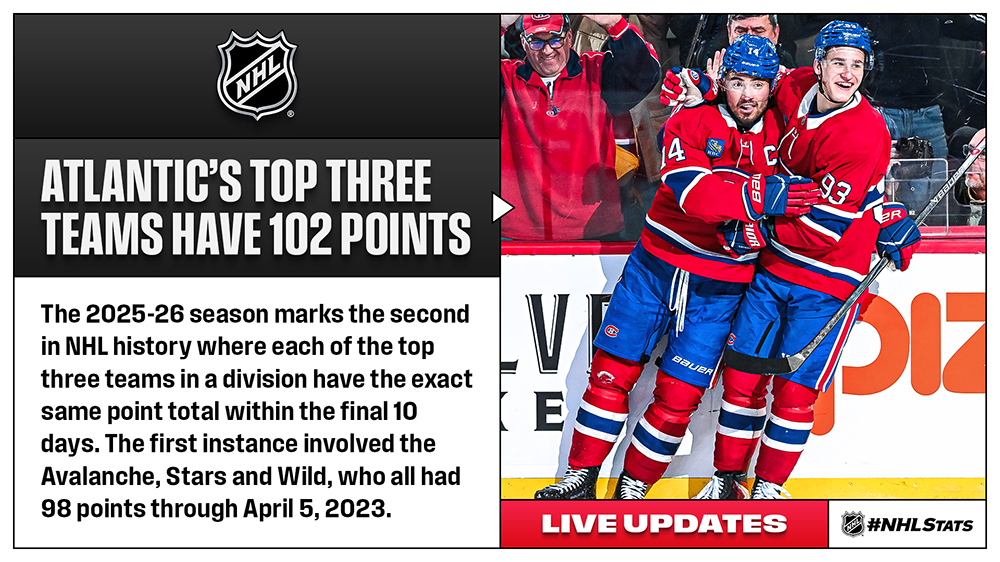 The Avalanche’s win also confirmed that the Stars (46-20-12, 104 points) will play the Wild (45-21-12, 102 points) during the First Round of the 2026 Stanley Cup Playoffs. Dallas and Minnesota will compete for home-ice advantage over the final nine days of the campaign, starting with a pivotal head-to-head to conclude their four-game season series tomorrow (9 p.m. ET on ESPN+, Hulu).