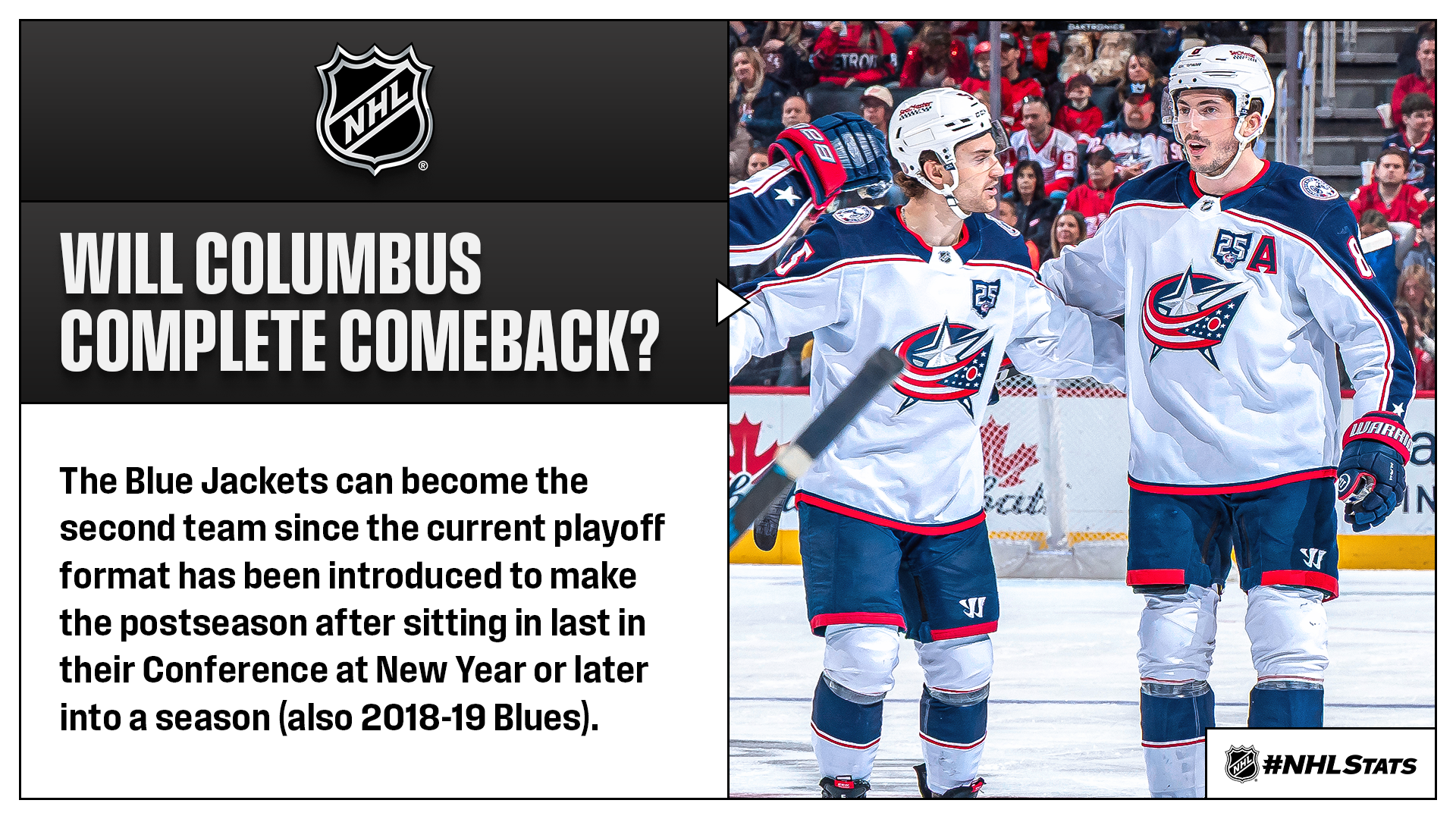 The Blue Jackets kept pace with the Senators, who occupy Wild Card 2, as they slightly separated themselves from the rest of the pack in a logjammed Wild Card race in the Eastern Conference that features five teams separated by five points while the Predators moved into the final Wild Card spot in the Western Conference, which has changed hands 14 times since March 1.