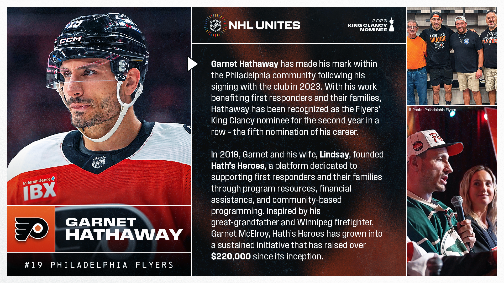 Garnet Hathaway named the Flyers’ King Clancy nominee for the second year in a row