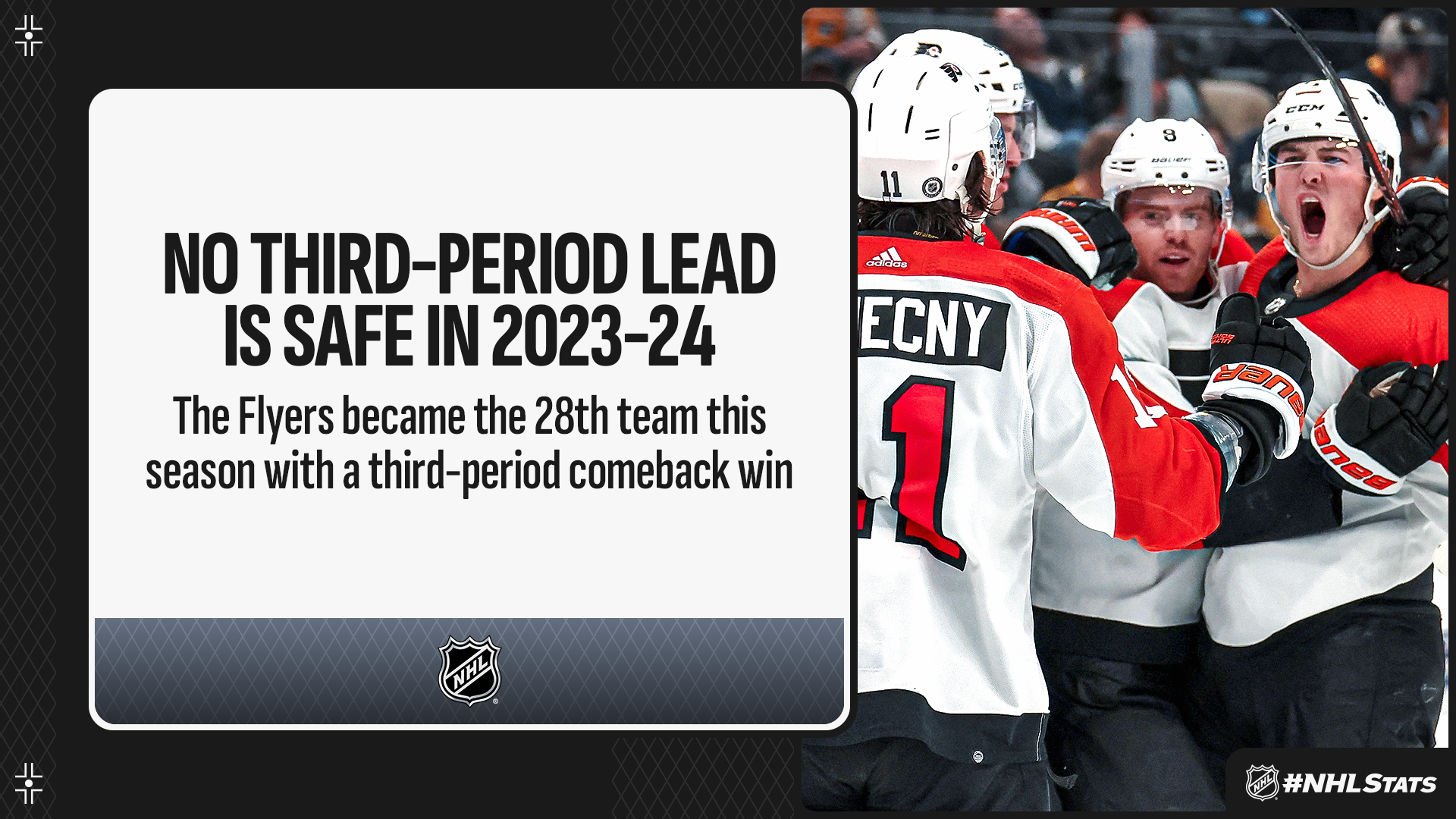 * The Flyers found themselves trailing in the third period but tallied twice to take the lead until Pittsburgh’s Jake Guentzel scored with 21 seconds left in regulation to even the game. Philadelphia would go on to claim victory in a shootout for their first third-period comeback win of the season.