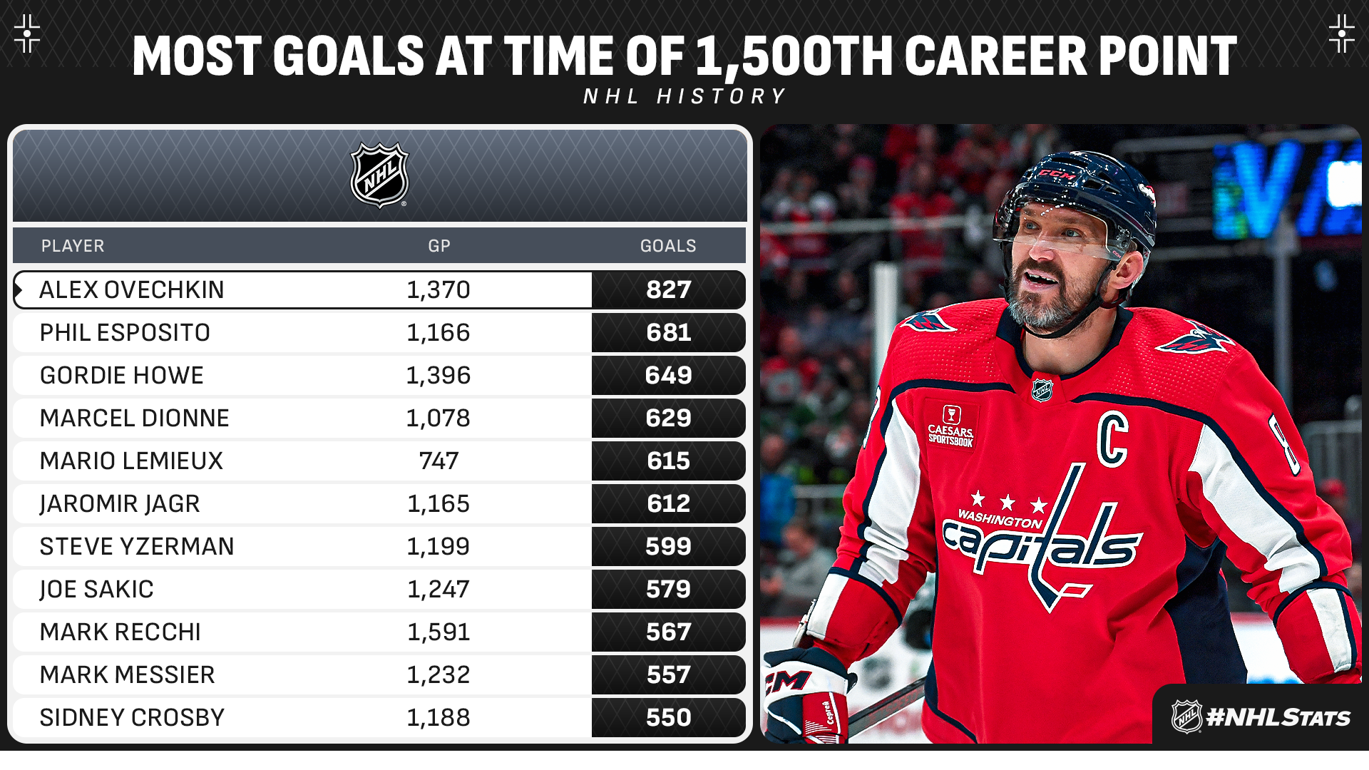 * Alex Ovechkin crossed another milestone off his list, this time becoming the 16th player in NHL history and second active skater to record 1,500 career points.