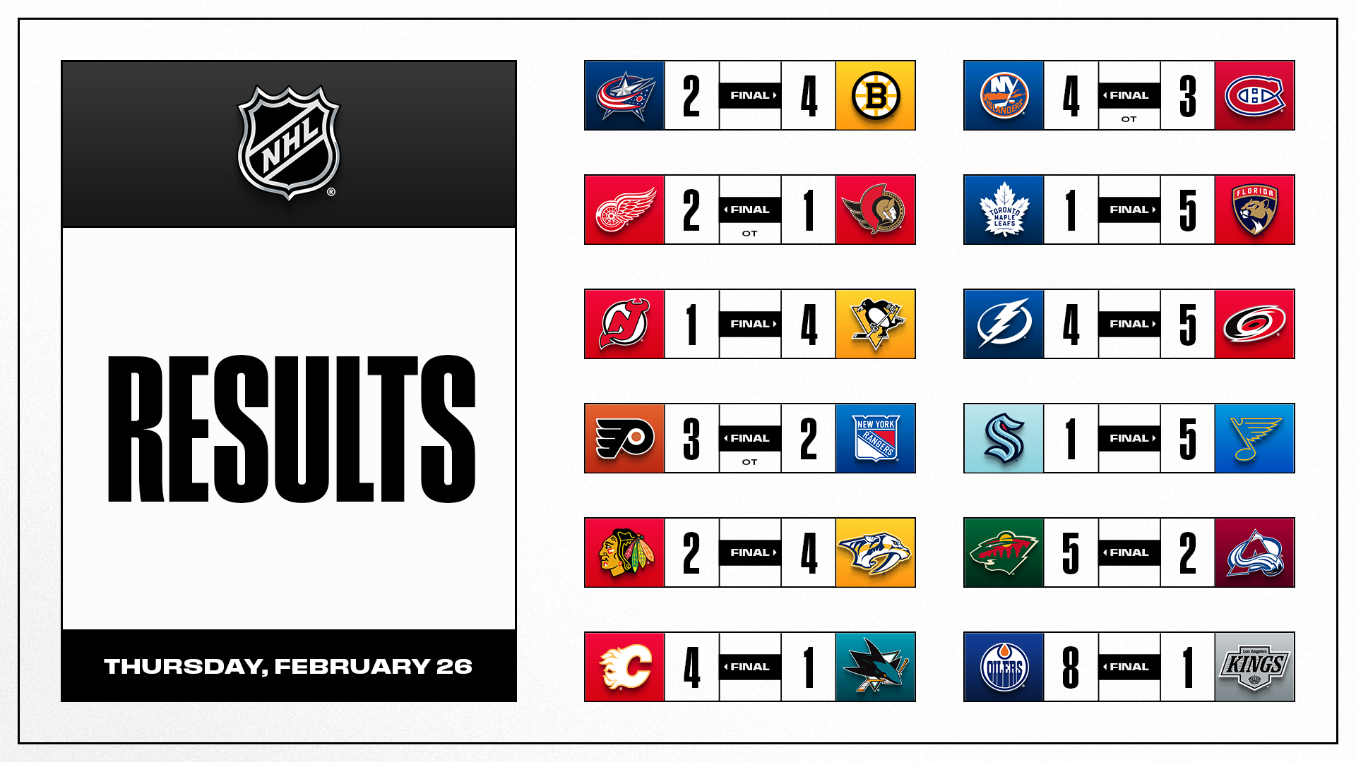 * Nine of 12 games Thursday were either tied or within a one-goal margin in the third period, which brought the 2025-26 total to 700 this season. The only other season in NHL history to hit the mark at this stage of a season (928 GP) is 2015-16 (727)
