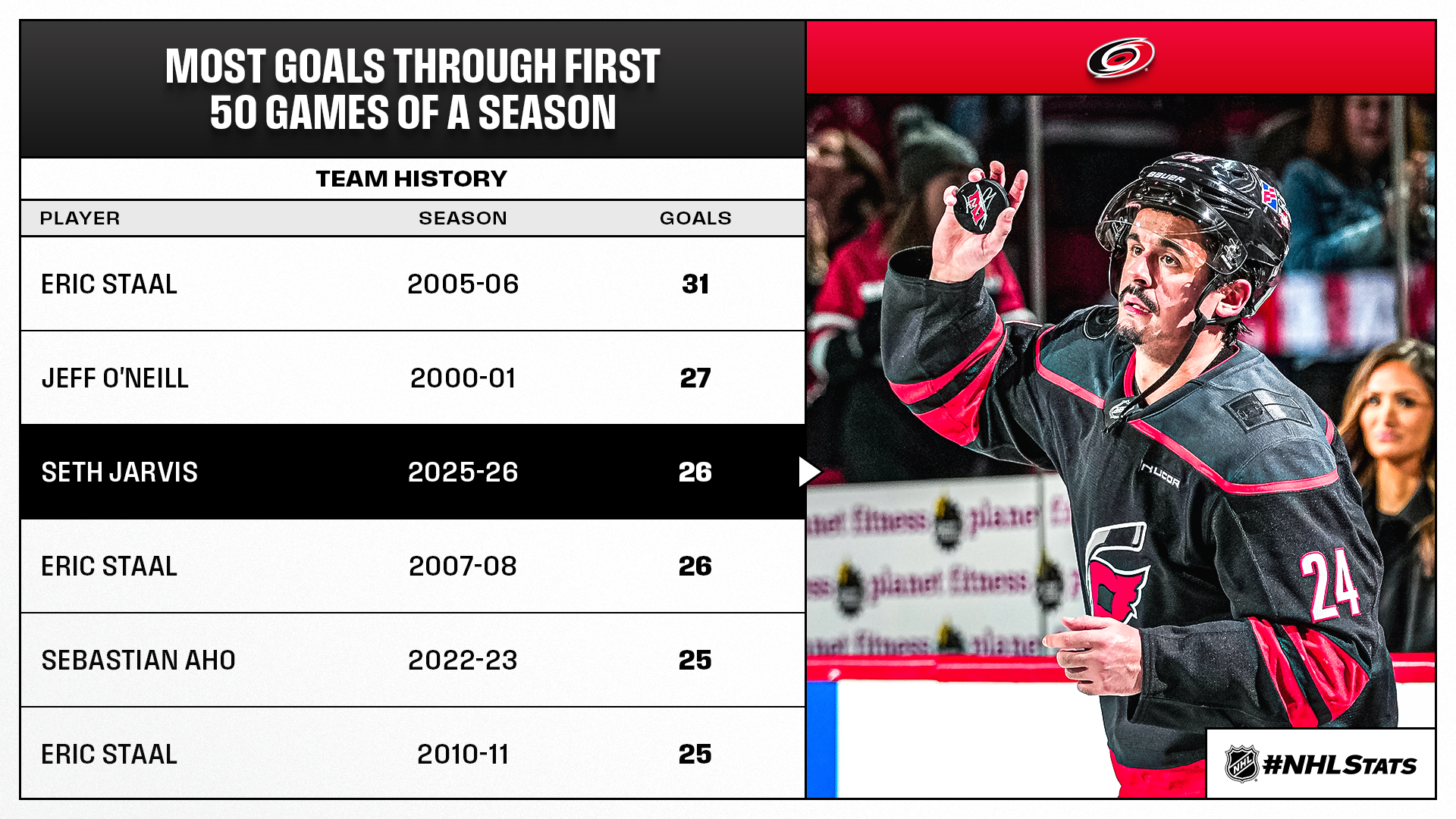 Nikita Kucherov (1-0—1) and Jake Guentzel (0-3—3) helped the Lightning erase 3-0 and 4-3 deficits, but Sebastian Aho (1-0—1) and Seth Jarvis (1-1—2) combined on the go-ahead goal in the third period as the Hurricanes extended their point streak to 11 games and moved into a tie, in terms of standings points, with Tampa Bay atop the Eastern Conference standings (TBL: 57 GP; CAR: 58 GP). Carolina is one of two teams to defeat Tampa Bay in regulation since Dec. 20 (also: CBJ on Jan. 24).
