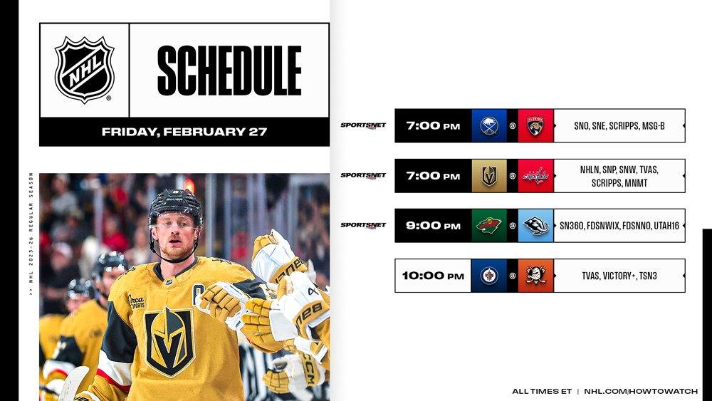 Friday’s four-game slate will see NHL action broadcast on NHL Network, across Sportsnet channels and on TVA Sports with three teams in action who currently hold a playoff spot after missing last season: Buffalo, Anaheim and Utah.