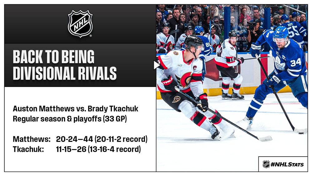 * Less than a week after skating as teammates in Milan, Maple Leafs captain Auston Matthews and Senators captain Brady Tkachuk renew their rivalry on opposite sides of the “Battle of Ontario” with both leaders looking to help will their team back into the postseason conversation. Toronto and Ottawa met in the First Round of the 2025 Stanley Cup Playoffs, with the Maple Leafs winning the first postseason “Battle of Ontario” in 21 years, and the clubs have since participated in a high-scoring contest earlier this season (TOR: 7-5 W).