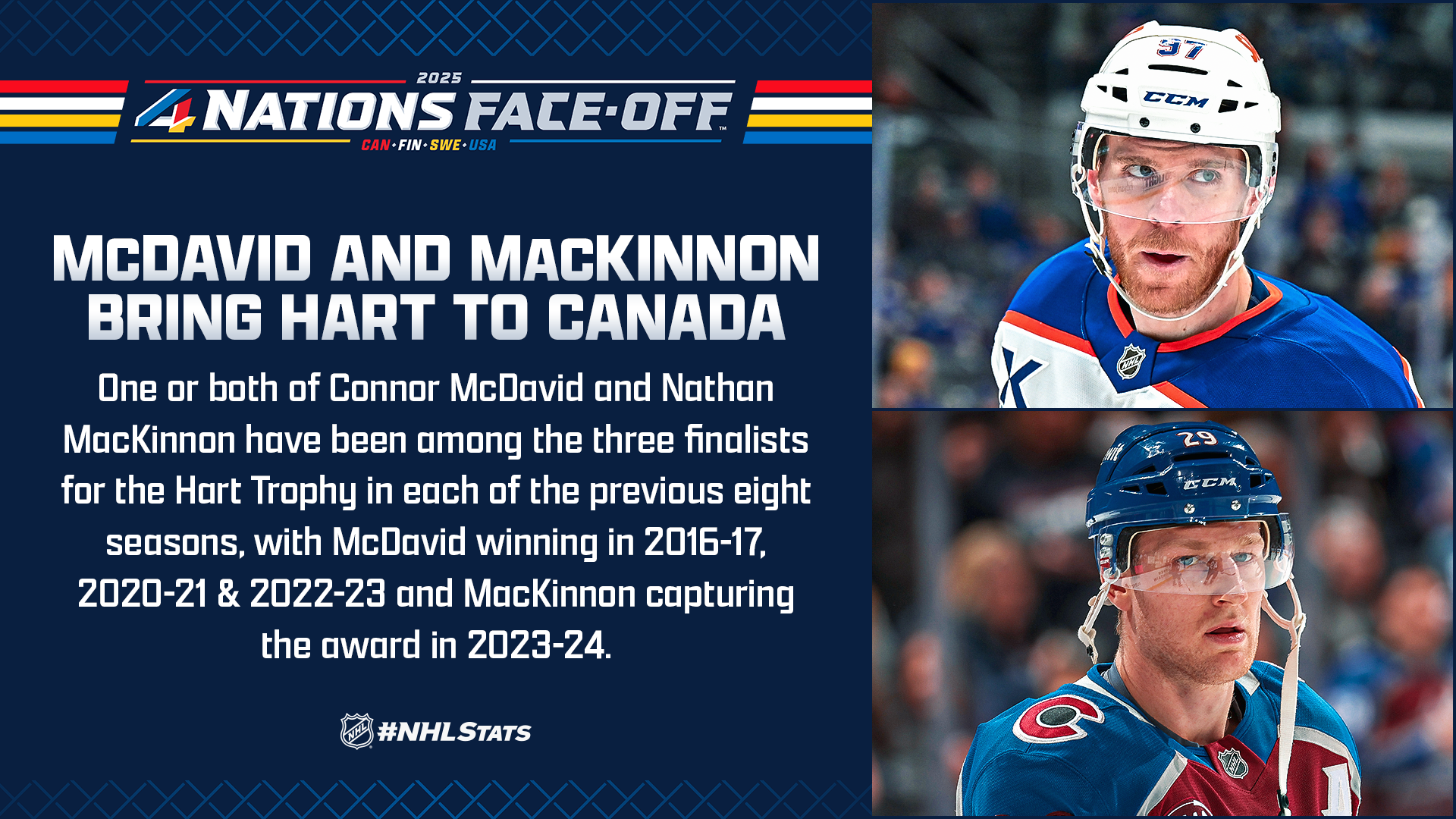 * McDavid and MacKinnon will play together for Canada for the first time; however, they have been teammates on the international stage before. McDavid captained Team North America at the 2016 World Cup of Hockey (0-3—3 in 3 GP) alongside MacKinnon, who produced 2-1—3 (3 GP), including an unforgettable overtime winner against Sweden’s Henrik Lundqvist in the team’s final contest. Canada opens the tournament against Sweden on Feb. 12 at Bell Centre in Montreal.