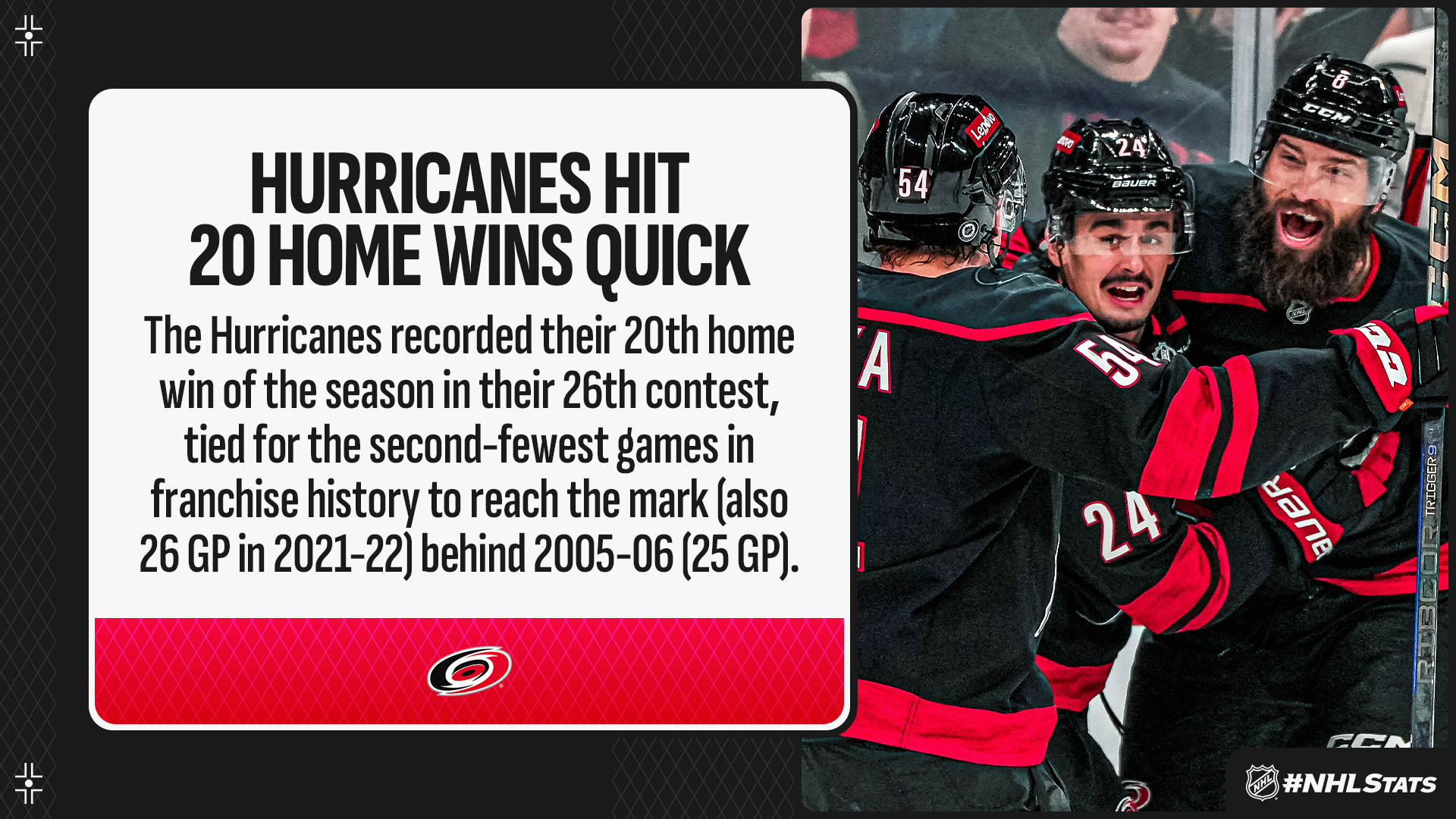 * Seth Jarvis (CAN) scored his team-leading 20th goal of the season and Mikko Rantanen (FIN) found the back of the net for the first time as a member of the Hurricanes as Carolina became the second team to 20 home wins this season. Jarvis became the fifth player in Hurricanes team history to record multiple 20-goal seasons with the club at age 22 or younger, joining Andrei Svechnikov (4x), Sebastian Aho (4x), Jeff Skinner (3x) and Eric Staal (2x).-31012510.png)