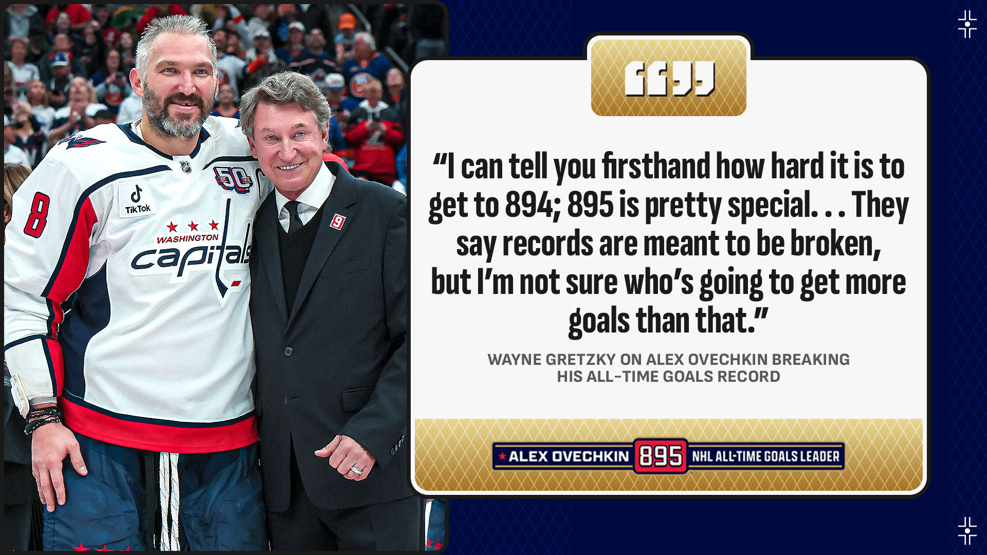 * Alex Ovechkin achieved Gr8ness in Long Island as he scored career goal No. 895 to break the NHL goals record held by Wayne Gretzky (894) – who was in attendance for the historic performance – an achievement long thought of to be untouchable.