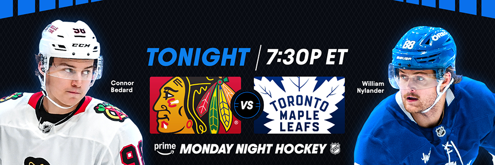 Tonight’s schedule is highlighted by Connor Bedard, Nick Foligno and the Blackhawks visiting William Nylander, Auston Matthews and the Maple Leafs during the latest edition of Prime Monday Night Hockey on Prime Video Canada.