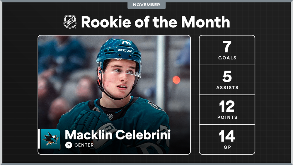 * Macklin Celebrini named Rookie of the Month for November