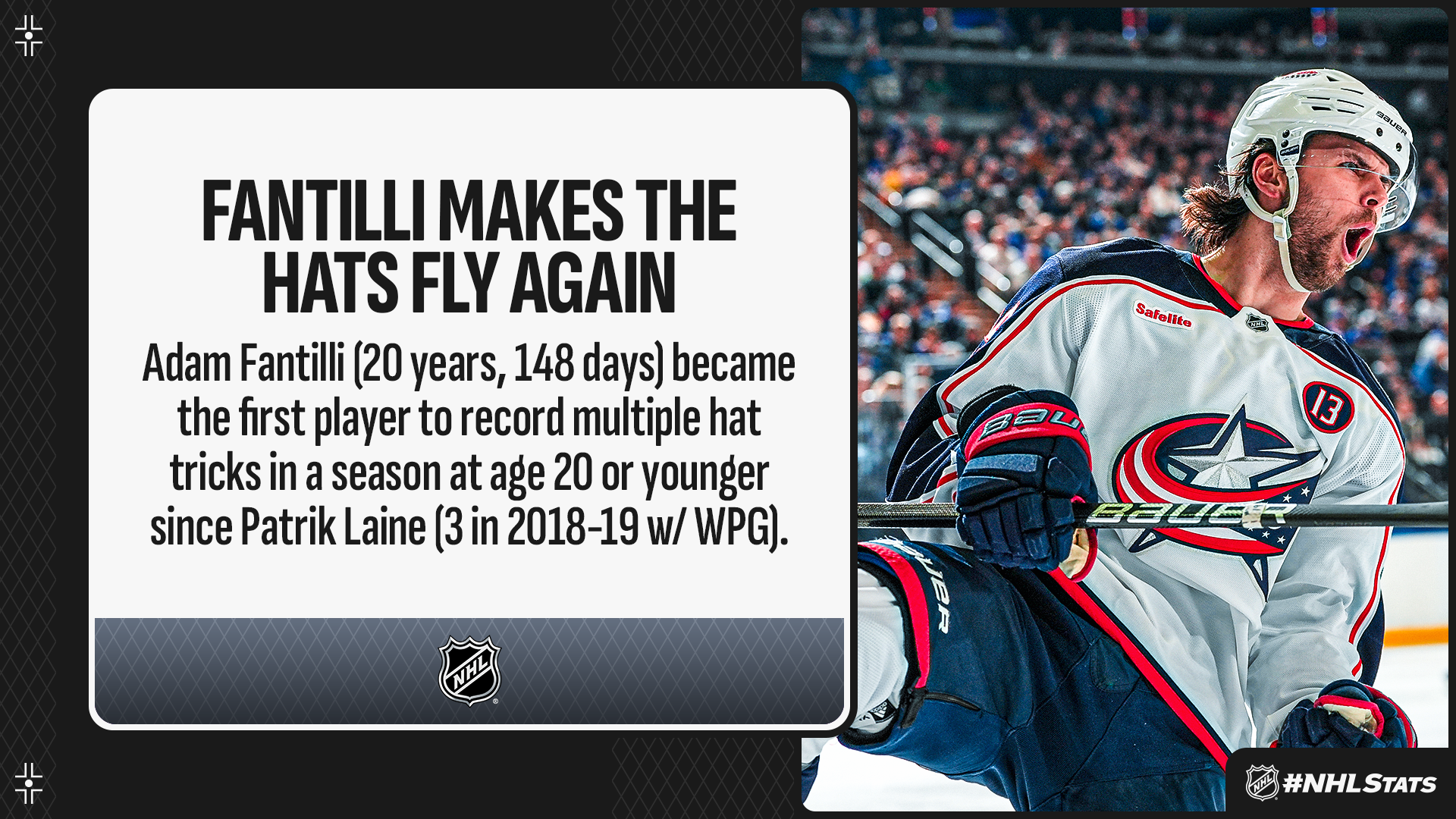 * Adam Fantilli scored his second hat trick of the season while Zach Werenski claimed a couple of franchise records in the Blue Jackets’ crucial regulation win against the Rangers. With every hat trick this season, AstraZeneca will donate $3,000 to the Hockey Fights Cancer Fund of the V Foundation up to $300,000.