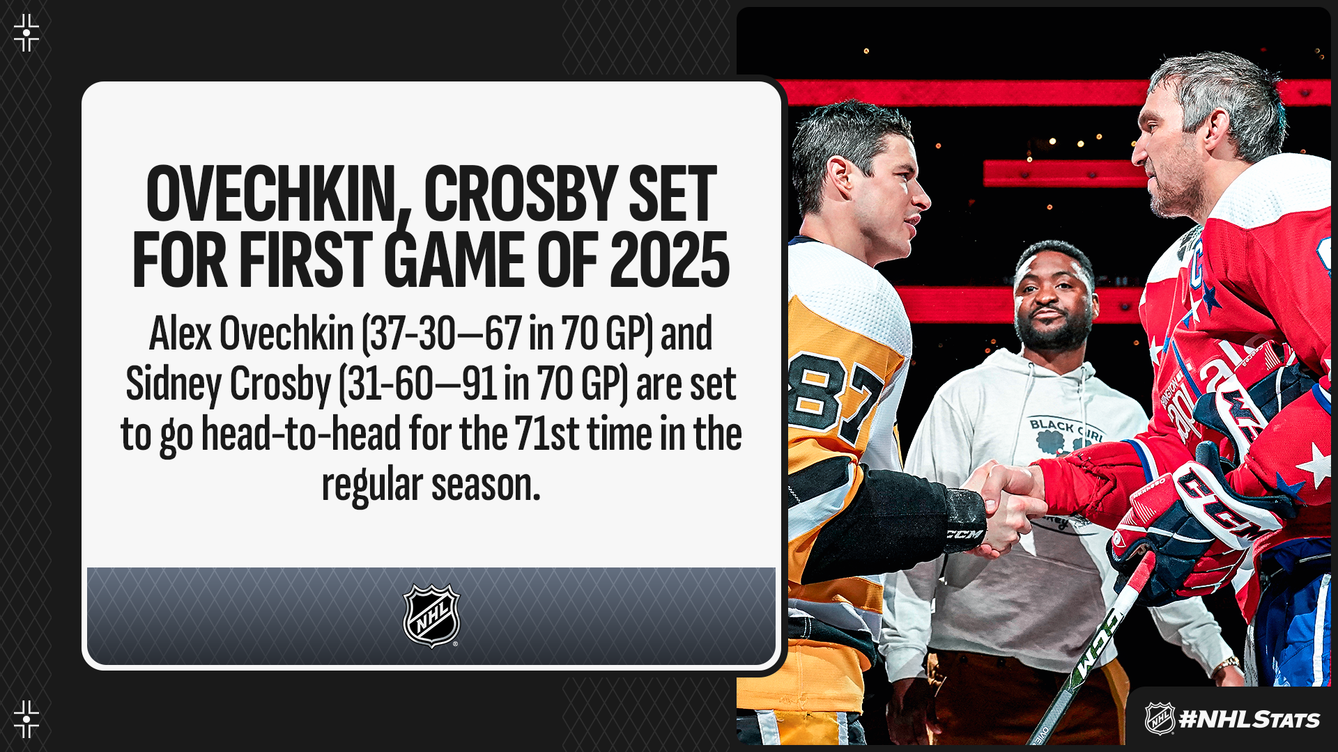 * In Washington, Ovechkin (874) now sits 21 goals away from breaking Wayne Gretzky’s NHL goals record (894) thanks to an overtime winner Thursday. Crosby (604-1,040—1,644), meanwhile, looks to continue his pursuit of catching Gordie Howe (1,049) for 10th place on the all-time assists list – the Penguins captain enters tied with Marcel Dionne (1,040) for 11th place.