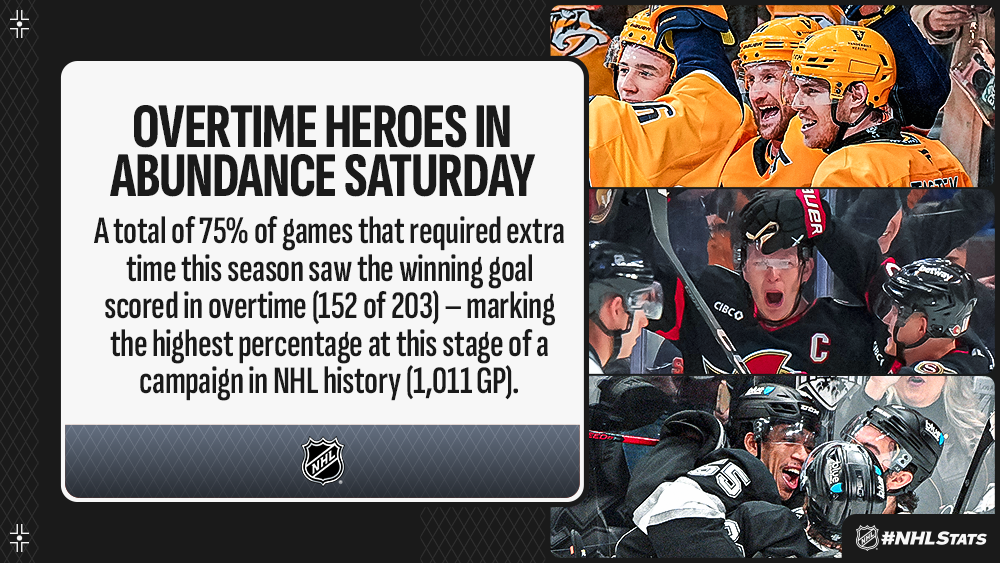 2024-25 TREND OF GAMES ENDING IN OVERTIME CONTINUES SATURDAY