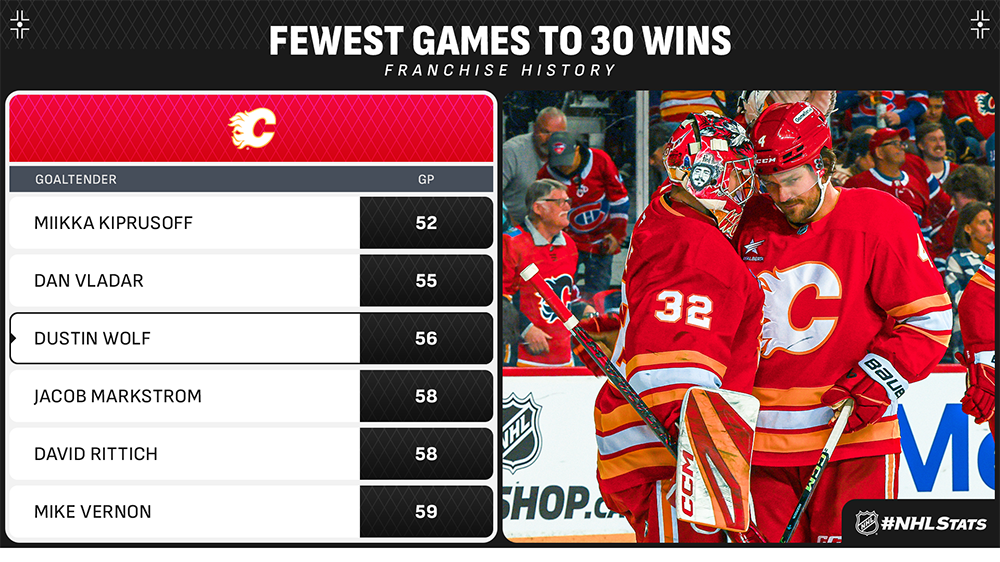 * Joel Farabee (1-0—1) scored the lone goal of the contest, while Wolf (26 saves) fended every shot he faced to register his third shutout of the season and propel the Flames (30-23-10, 70 points) back into the final Wild Card spot in the West. Wolf set a new franchise record for the most shutouts in a single campaign by a rookie netminder and tied Leevi Meriläinen (3) for the most by a rookie this season.