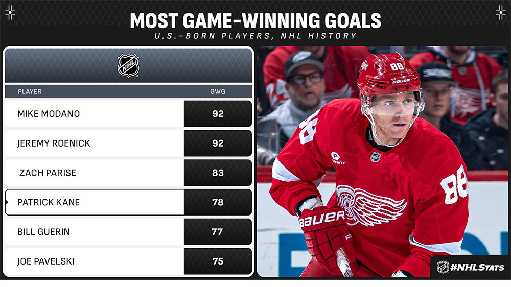 * Patrick Kane scored his 78th career game-winning goal to help the Red Wings defeat the Flyers and climbed an elite list of U.S.-born players in the process.