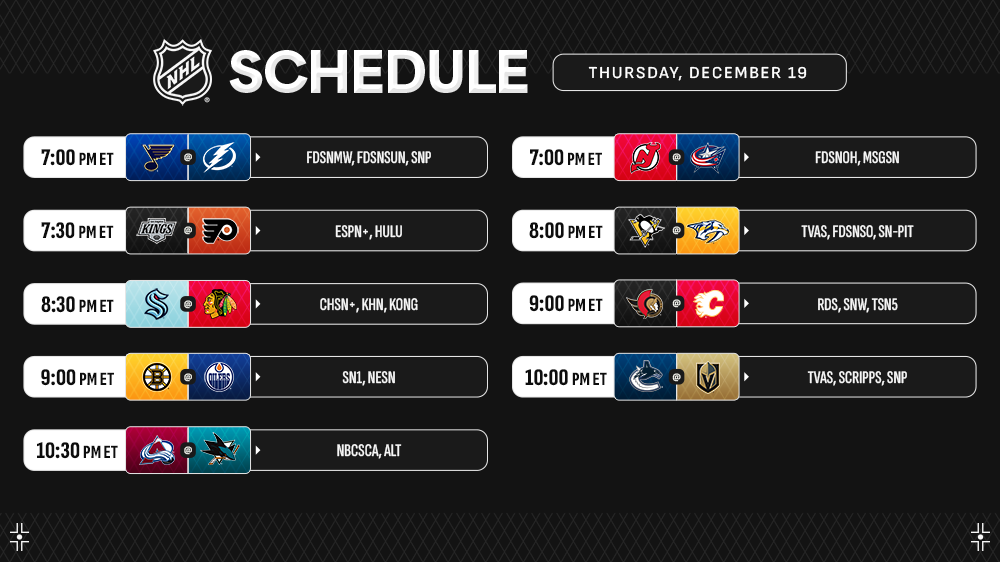 NHL Coast to Coast, the weekly studio show featuring live look-ins, highlights and expert analysis of every contest, returns during a nine-game night highlighted by Brady Tkachuk and the Senators looking to stretch their season-high winning streak to five games when they visit Nazem Kadri and the Flames. Fans can tune in on Prime Video Canada starting at 7 p.m. ET.