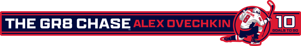 * Alex Ovechkin scored the tying tally to bring The Gr8 Chase within its final 10 goals and help the Capitals gain ground on the idle Jets for first place in the League standings.