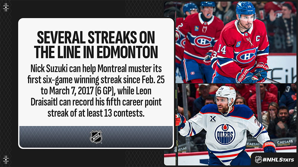 * More highlights include Wyatt Johnston and the Stars (40-19-2, 82 points) squaring off with Nazem Kadri and the Flames (29-23-9, 67 points) on Sportsnet ONE; David Pastrnak and the Bruins (28-27-8, 64 points) pitted against Sebastian Aho and the Hurricanes (36-22-4, 76 points) on TVA Sports; as well as the Blue Jackets (30-23-8, 68 points), Red Wings (30-25-6, 66 points), Canadiens (30-26-5, 65 points), Utah Hockey Club (27-25-9, 63 points) and Flyers (27-27-8, 62 points) also looking to gain ground in tightly-contested Wild Card races.
