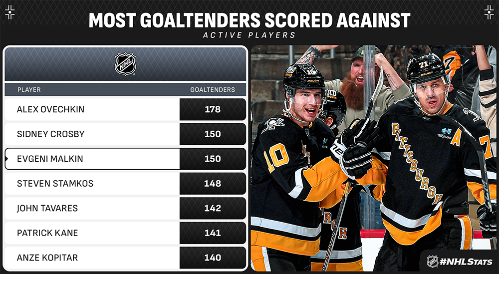 * Malkin, whose first career goal against Spencer Knight was the second of two Penguins goals in a span of 72 seconds, boosted his career totals in overtime to 13-29—42 – his 29 assists in that scenario broke a tie with Patrick Kane for the most in NHL history.