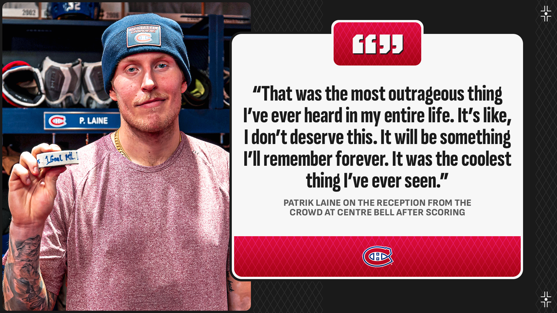 * Patrik Laine scored his first goal in a Canadiens uniform after being traded to the club during the offseason – one that was welcomed with a raucous reception at Centre Bell – and Lane Hutson extended his point streak to four games to help Montreal (9-13-3, 21 points) extend its point streak against the Islanders to five contests. Hutson established the longest point streak by a Canadiens defenseman age 20 or younger when he lengthened his run to five games.