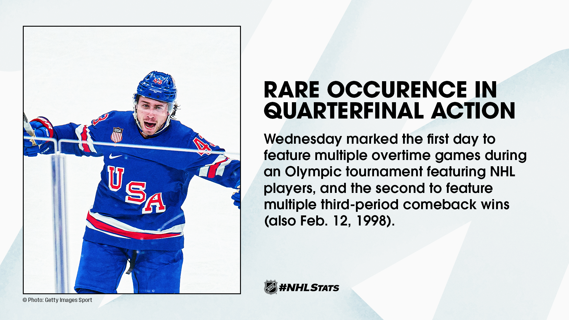 In the midst of a 2025-26 NHL campaign that has featured 233 overtime games, the most ever at this stage of a season, three of four quarterfinal contests Wednesday required extra time – with an NHL player notching the winner in each – as Team Finland, Team Canada and Team USA each secured their place in the semifinals.