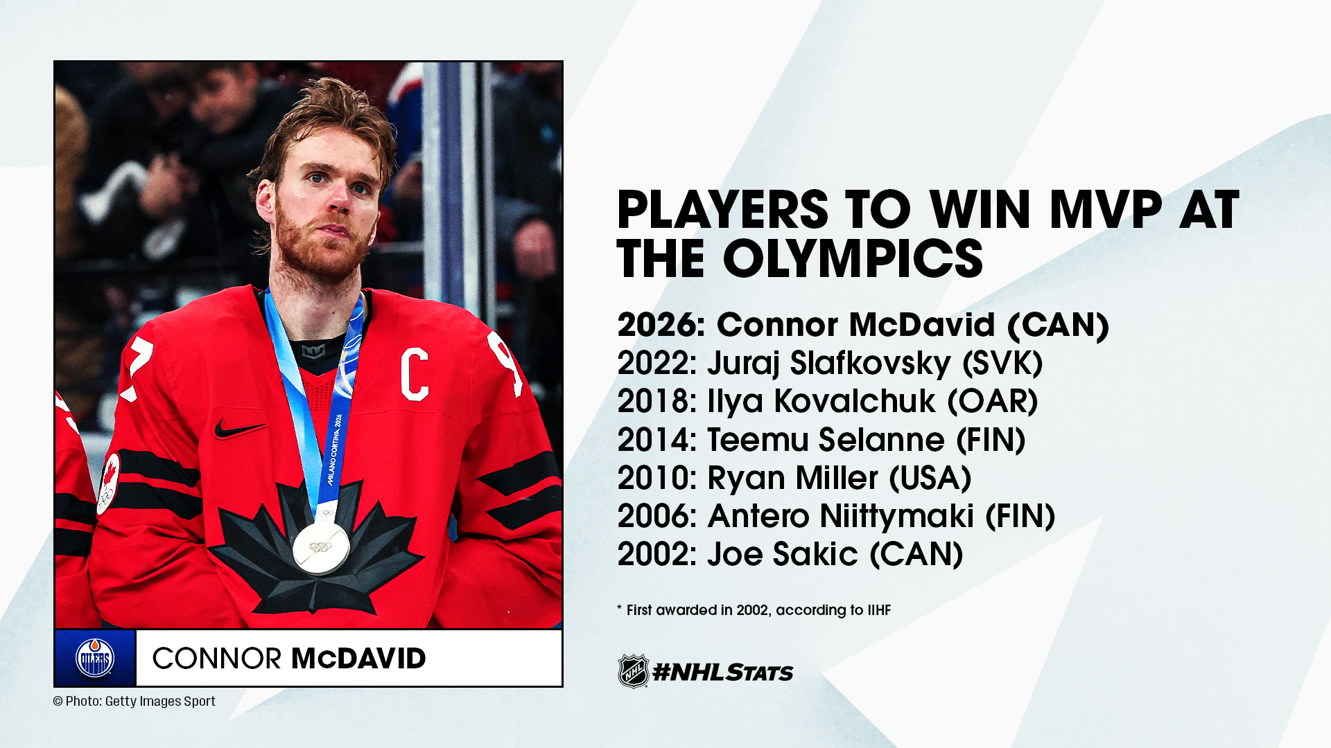 * Oilers captain Connor McDavid (Team Canada) set a single-tournament Olympic record for points by an NHL player and was named Milano Cortina 2026 tournament MVP. McDavid was one of a number of NHLers who posted stand-out performances at the Games.