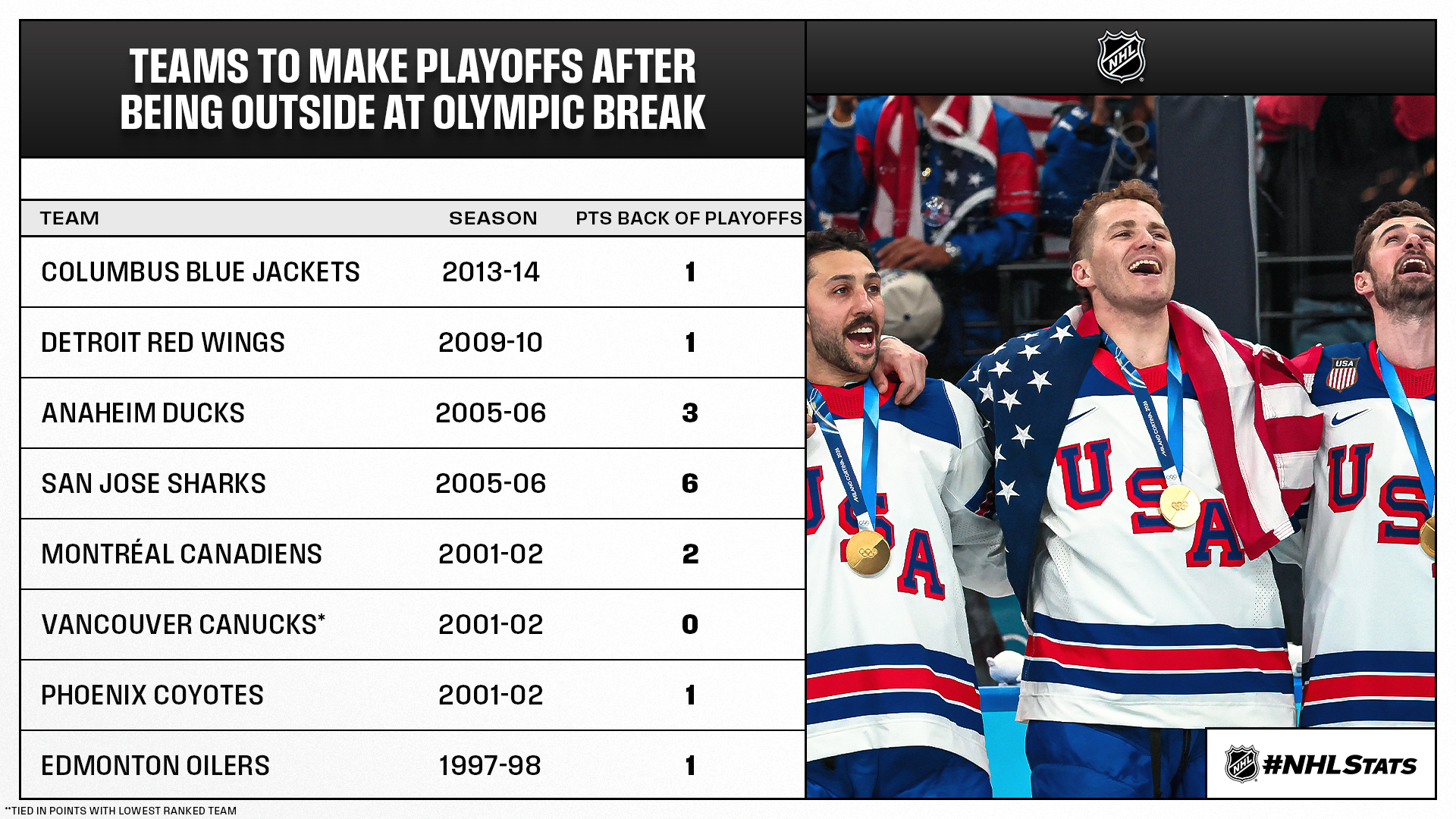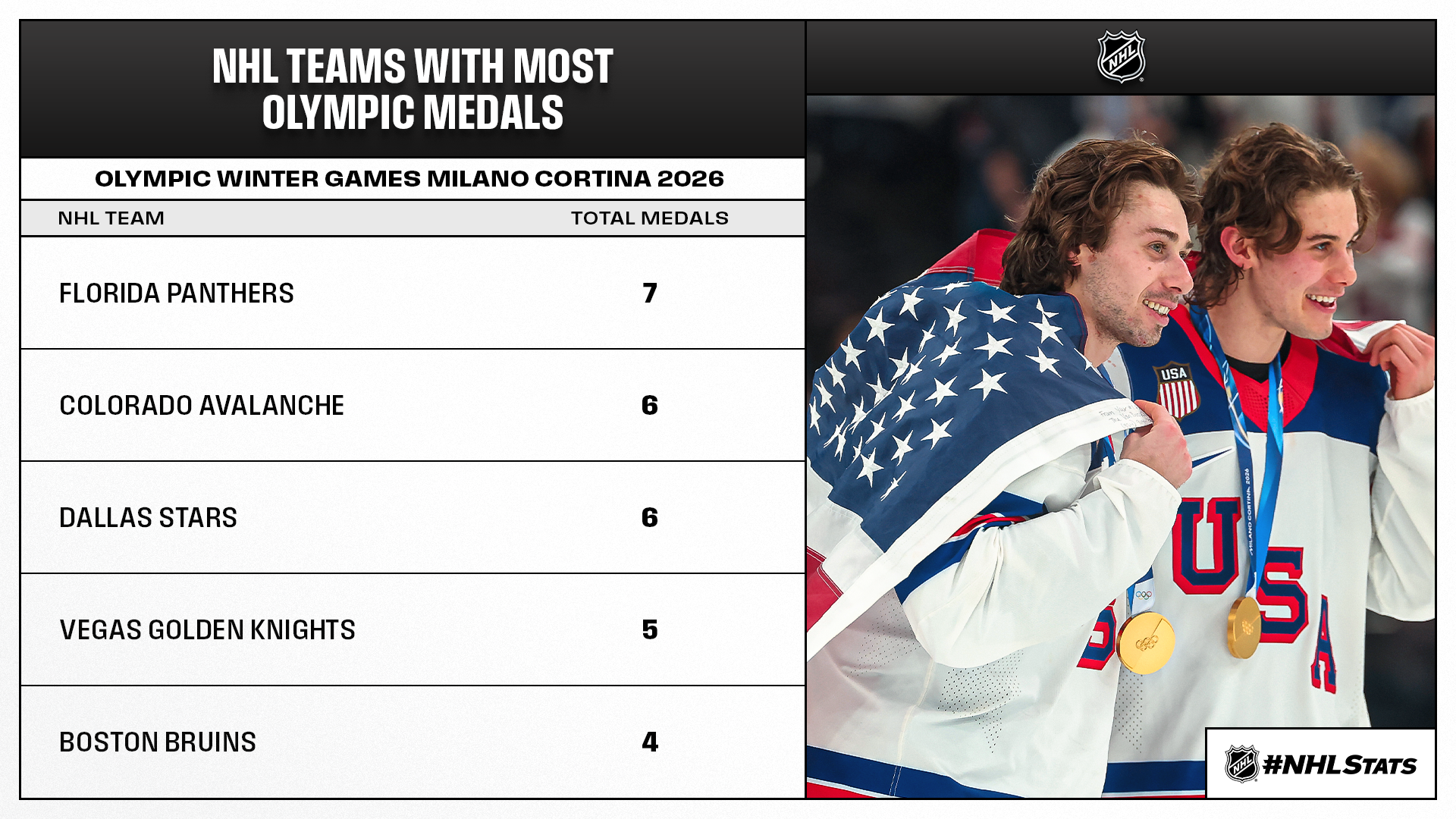 Why to Watch: The two-time reigning Stanley Cup champion Panthers return from the break with seven Olympic medalists but sit eight points back of a playoff spot. Islanders rookie Matthew Schaefer continues his pursuit of bringing his club back into the postseason, while Matthew Tkachuk returns to NHL action after becoming the ninth player to win an Olympic gold in a season after winning the Stanley Cup. He’s the first since a trio of Blackhawks skaters: Duncan KeithPatrick Sharp and Jonathan Toews (2014 Olympic gold & 2013 Stanley Cup).