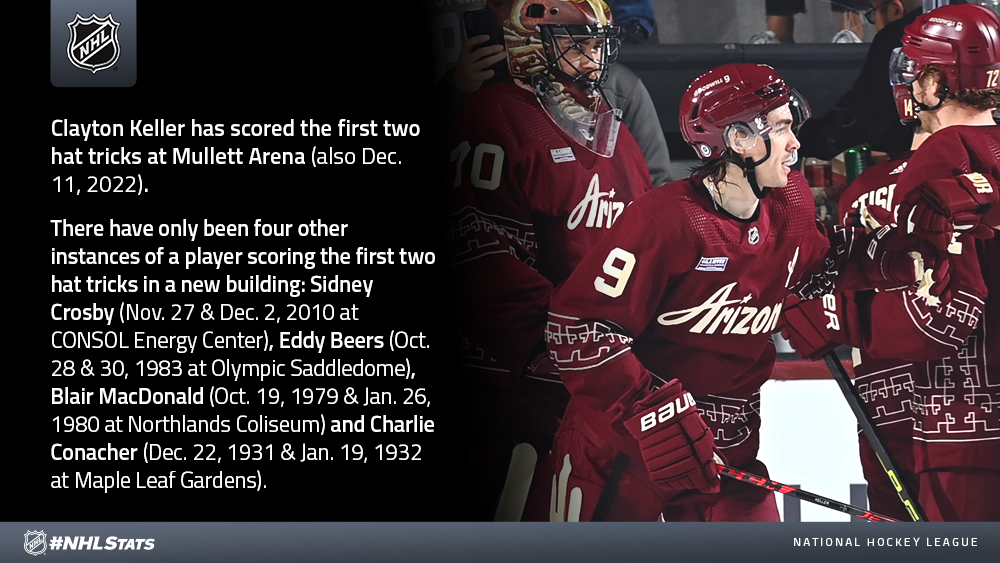 KELLER’S HAT TRICK AT MULLETT ARENA FEATURED IN #NHLSTATS: LIVE UPDATES