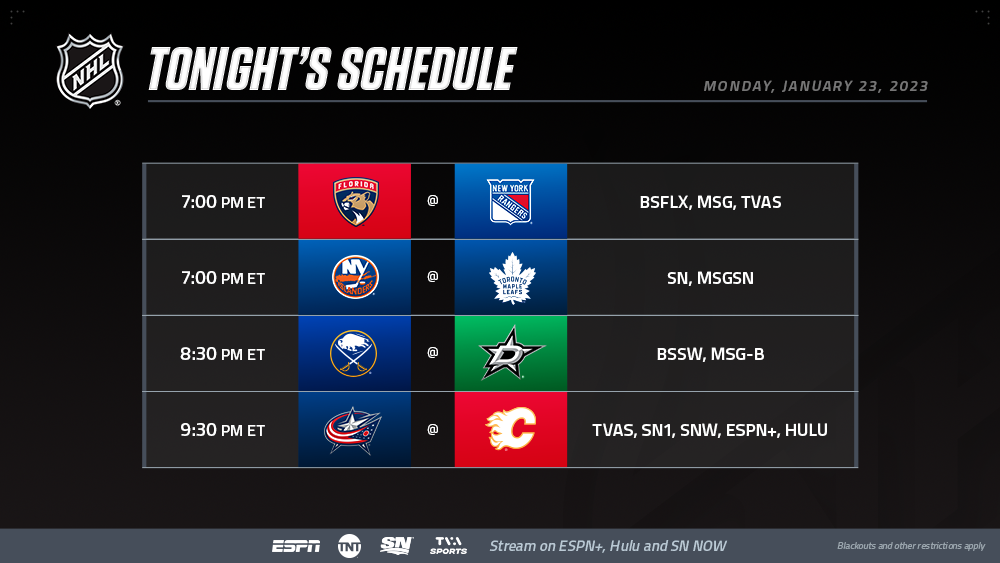 * Blue Jackets forward Johnny Gaudreau is set to make his return to Calgary in a contest that will air exclusively on ESPN+ and HULU in the U.S. and finish a TVAS doubleheader in Canada. Sportsnet One will also carry the contest to close out a schedule that includes a national Sportsnet telecast from Toronto.