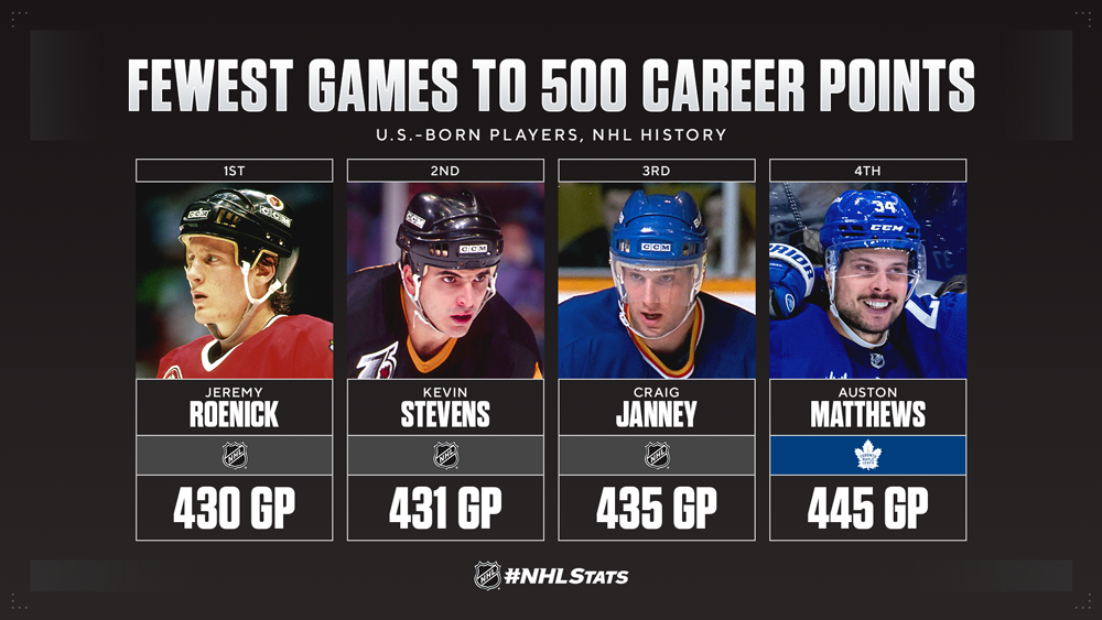 MATTHEWS’ 500-POINT MILESTONE FEATURED IN #NHLSTATS: LIVE UPDATES