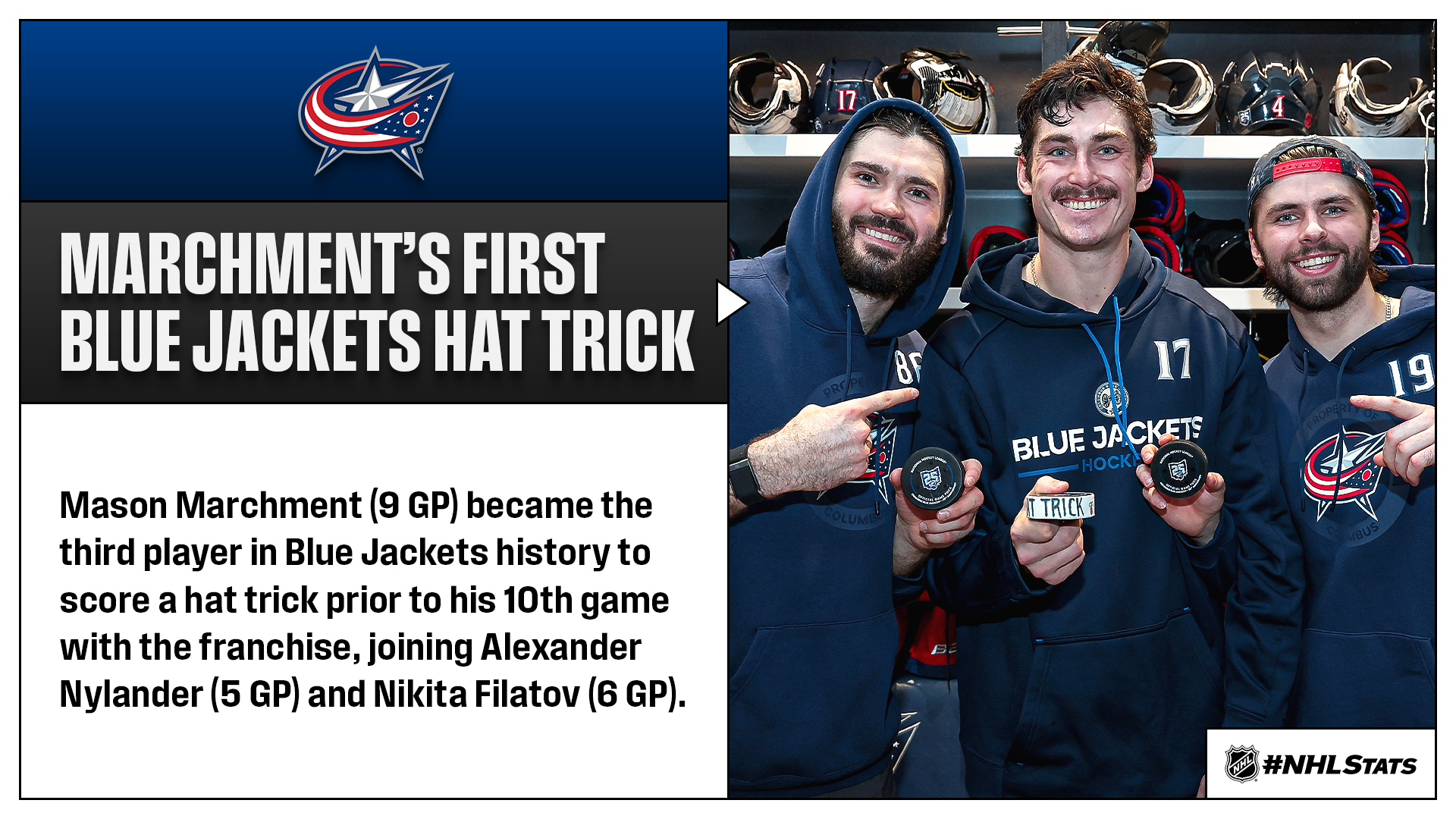 * Marchment boosted his totals with Columbus to 8-3—11 in nine games. His eight goals are the most by a player before his 10th game with the franchise. Meanwhile, he also tied Zach Werenski and Artemi Panarin for the second-fewest games to 10 points with the club, behind only Scott Hartnell (8 GP).