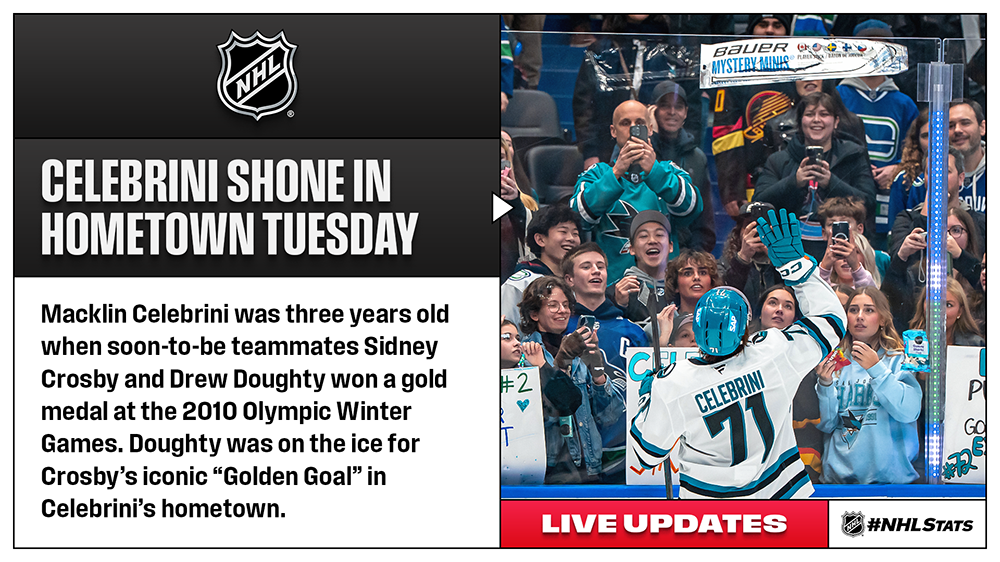 Celebrini collecting FOUR points in hometown featured in Live Updates