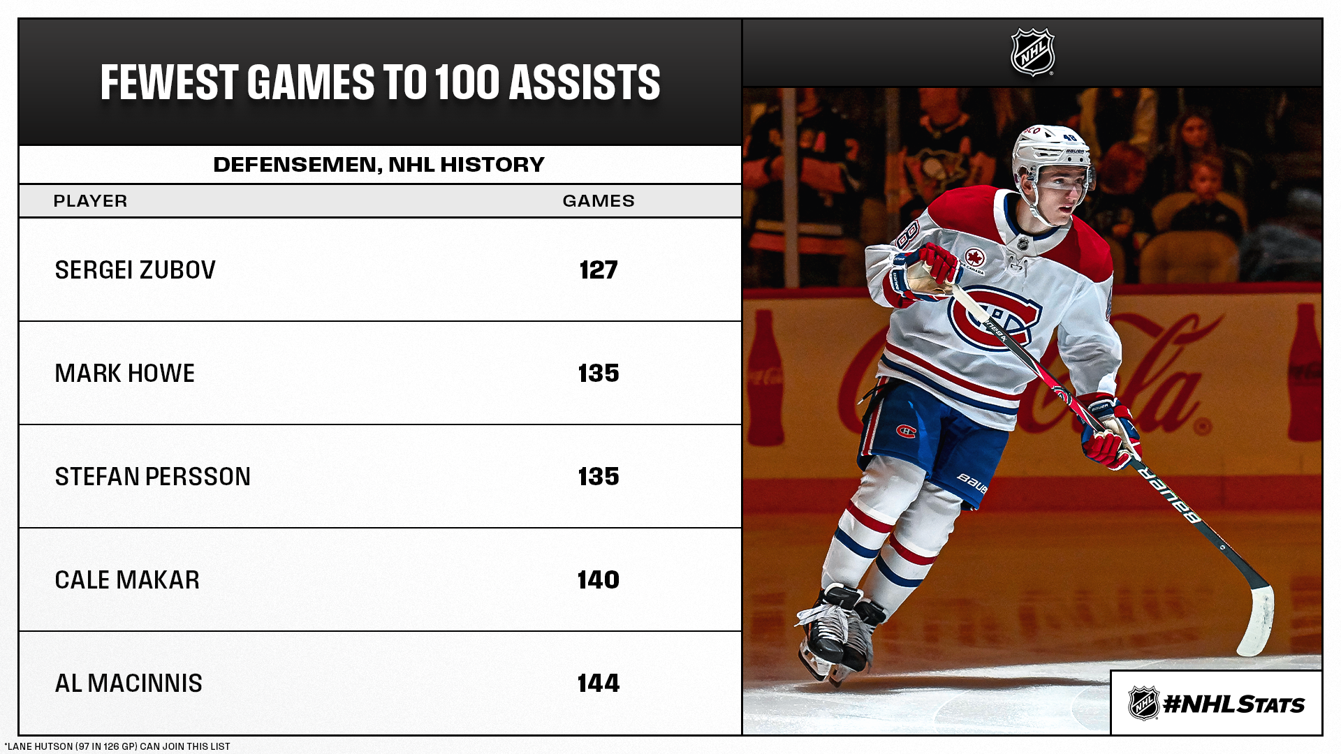 * Lane Hutson has collected 2-18—20 in 13 games since Dec. 11 on the back of eight multi-point outings – the most points among all defensemen and tied for the fourth most among all skaters over that span. Hutson (13-97—110 in 126 GP) needs three helpers to become the fastest player in Canadiens history to reach the 100-assist milestone after debuting with the club – a distinction held by Buddy O’Connor (129 GP) since March 18, 1944.