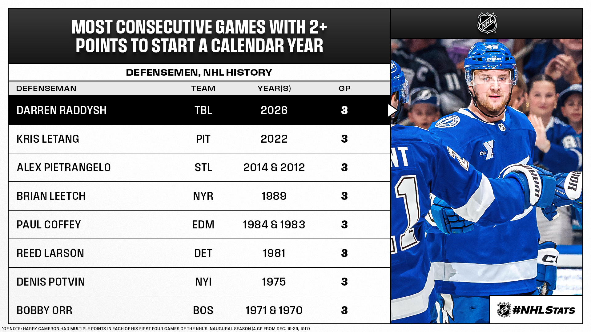 * Nikita Kucherov and Darren Raddysh helped the Lightning log a win as they continue to approach the 2026 Navy Federal Credit Union NHL Stadium Series at Raymond James Stadium on Feb. 1 (6:30 p.m. ET on ESPN, SN, TVAS). The League will hold a tie-down meeting at the venue today.