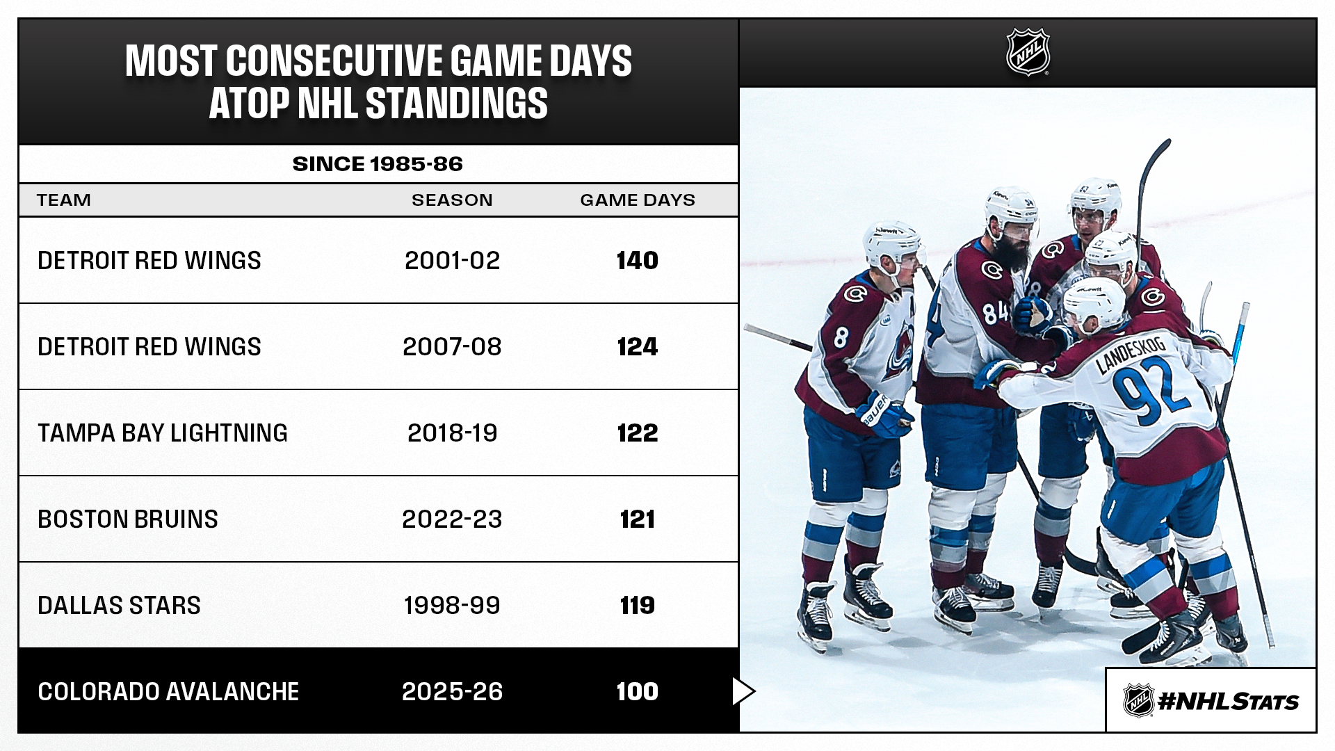 AVALANCHE BECOME FIRST TEAM TO 40 WINS
