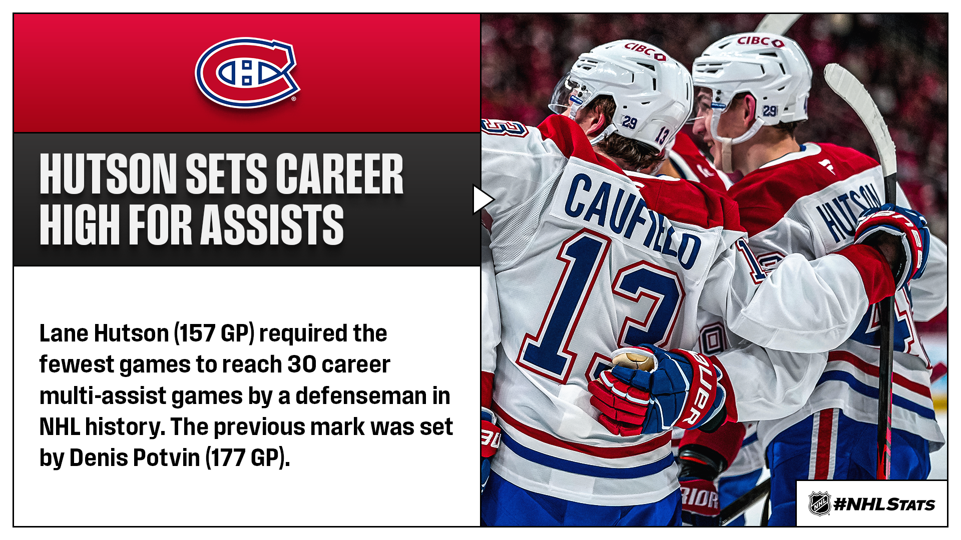 * The Canadiens collected their fifth straight victory in a contest that saw Cole Caufield and Lane Hutson both achieve notable feats – Caufield climbed into the top three for go-ahead goals in a single campaign in League history, while Hutson moved into third place on a Canadiens’ defenseman list for assists in a season.