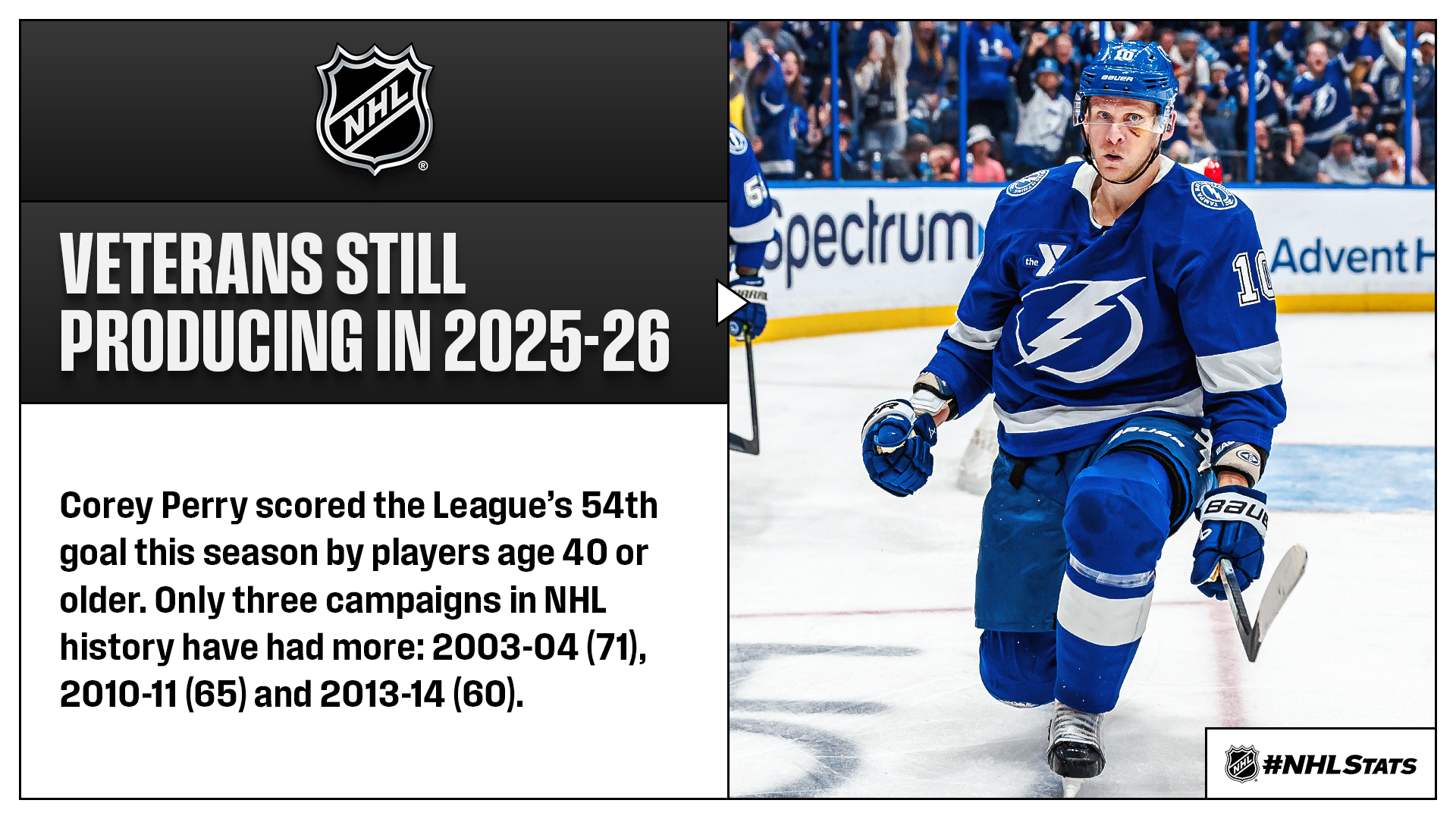 * Corey Perry continued the NHL’s trend of players 40 and older scoring this season and helped the Lightning move back into first place in the Atlantic Division and Eastern Conference.