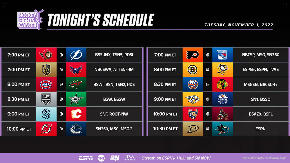* Continuing the tradition, all 32 NHL Clubs will host a Hockey Fights Cancer in-game awareness night with original storytelling, special ceremonies and fundraising efforts for local charities.